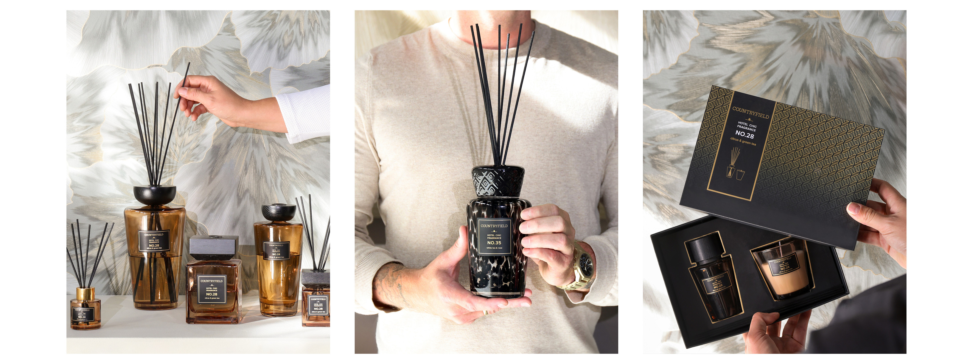 Unique to Decostar is our own brand Countryfield. This trendy home decoration brand has a wide variety of home decoration items and its own fragrance brand Countryfield Ambiance. Discover the ten scents of Countryfield Ambiance from floral to spicy. Each scent has its own colour that can be applied to any interior style and matches our home decoration brand.