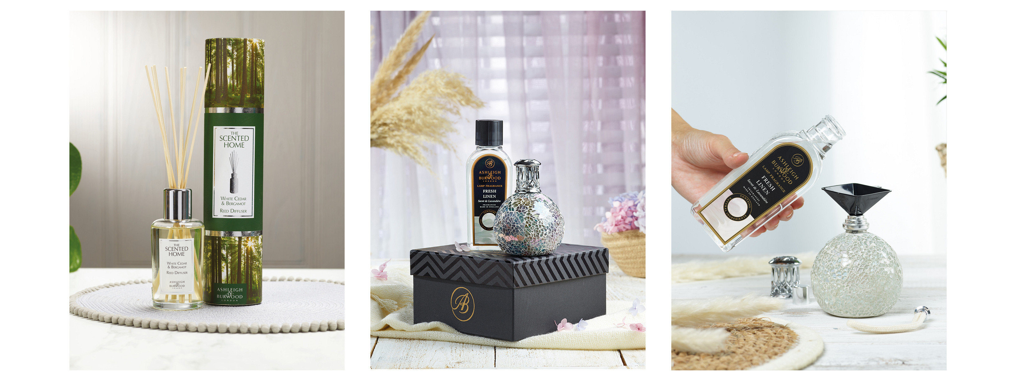 Our own collection is complemented by the products of clock brand Thomas Kent Clocks and the luxury home fragrance lines of Ashleigh & Burwood.